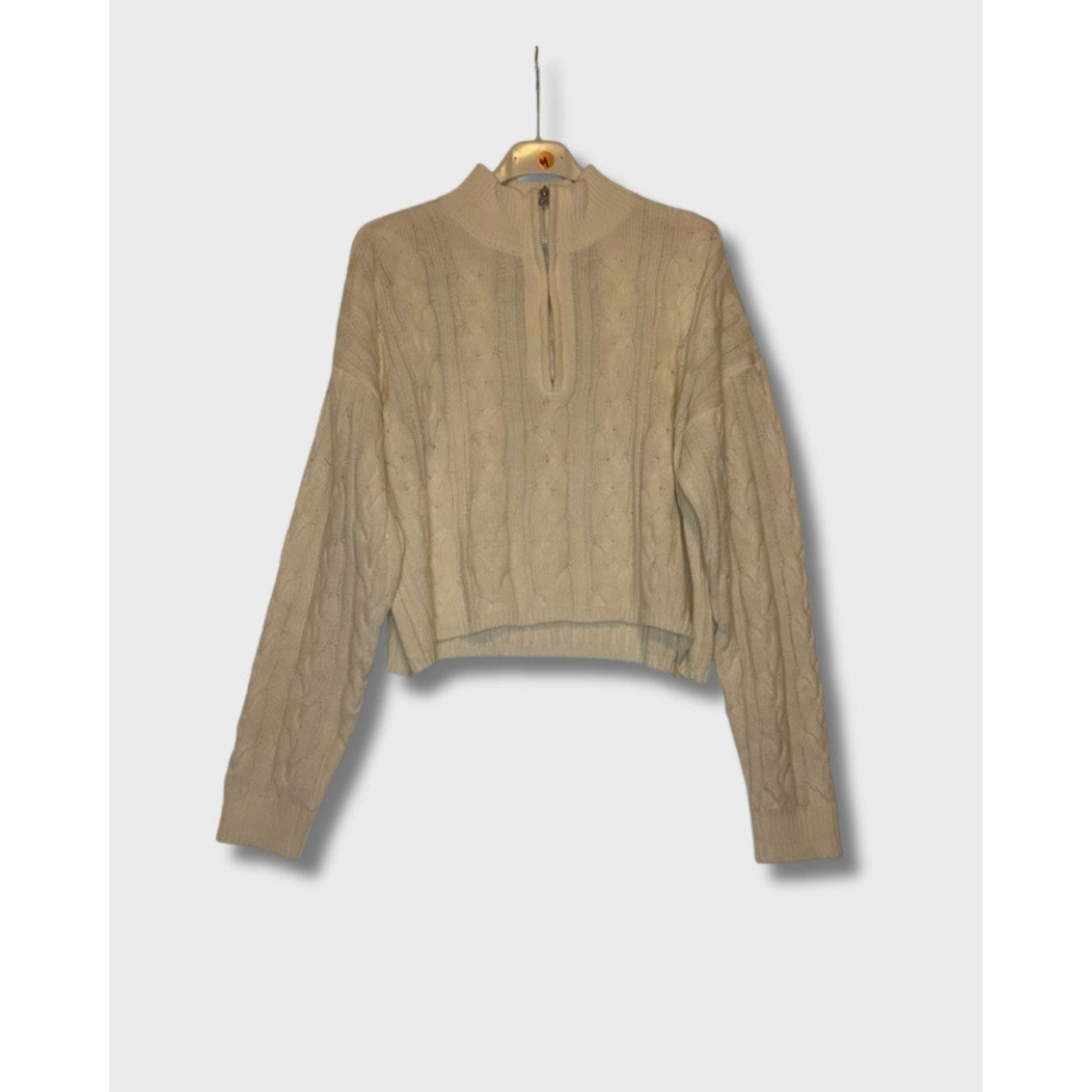 Suéter de punto trenzado con cierre de cremallera talla L